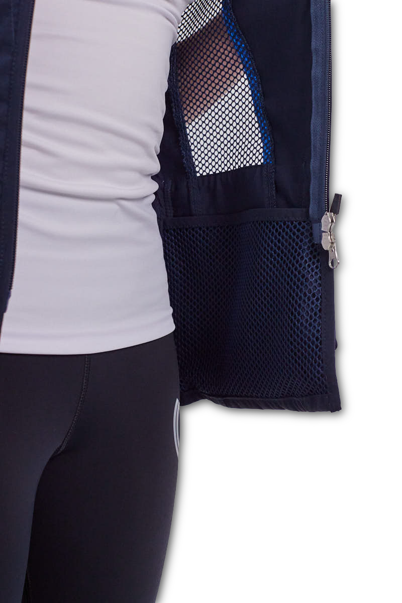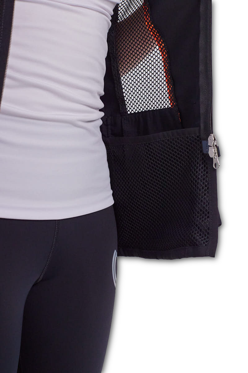 このテクニカル素材は、銃床との安定した接触をサポートすると同時に、肩周りの空気循環を向上させます。適度なグリップ力と高い通気性のバランスにより、本トラップシューティングベストのパフォーマンス特性をさらに高めています。